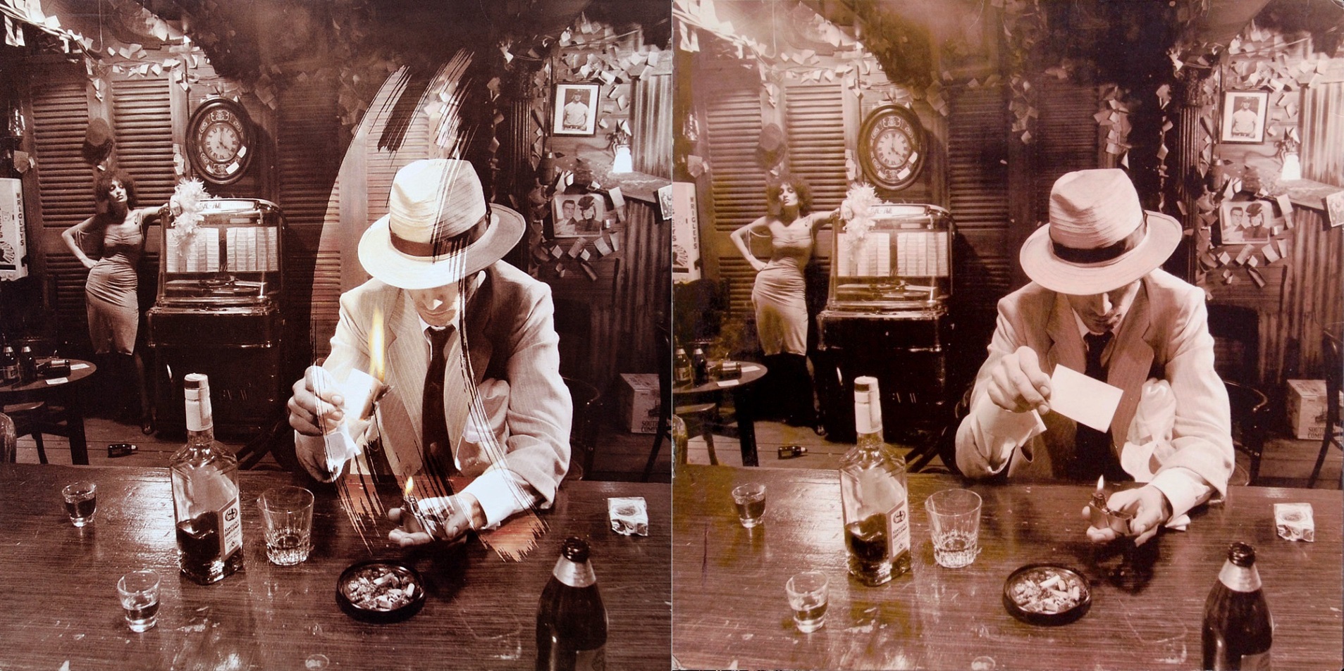 Základem koncepce je působivá scéna v baru, kde se muž v bílém obleku chystá spálit dopis s oslovením “Dear John” nevěstícím nic dobrého pro budoucnost vztahu. K naplnění uměleckého záměru byl vybrán půltucet fotografií zachycujících zmíněný okamžik, vždy ale z perspektivy jiné postavy přítomné s “Johnem” v lokále (rozverná černoška, dáma u jukeboxu, lelkující blondýna, znuděný barman, preludující klavírista a podnapilec u dveří).