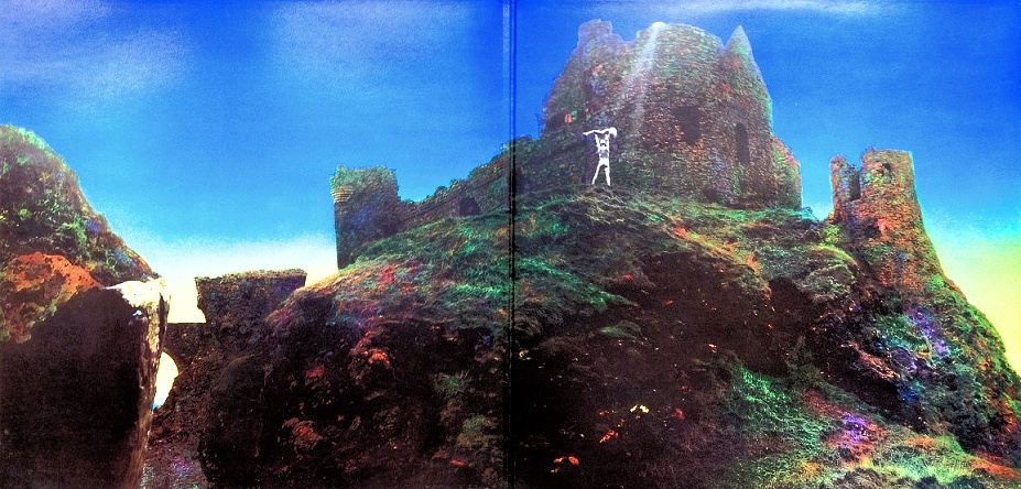 Fotografie pro vnitřní stranu obalu byla pořízena na severním pobřeží Irska u zříceniny středověkého hradu Dunluce, jehož kameny na snímku vyzařují slabou záři. Podle všeho je na něm Stefan Gates vyobrazen coby obětina, snad i proto na akci zpětně nahlížel s rozporuplnými pocity a na místo činu se vrátil až po letech, aby si tam album Houses of the Holy poslechl poprvé v životě.